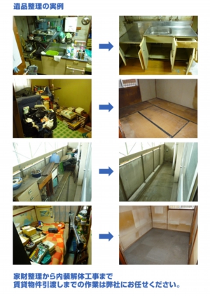 大切な遺品を、まごころを込めて、遺品整理スタッフがお掃除、処分いたします。
